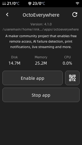 - Apps system (OctoEverywhere, Cloudflare, Tailscale, ...)