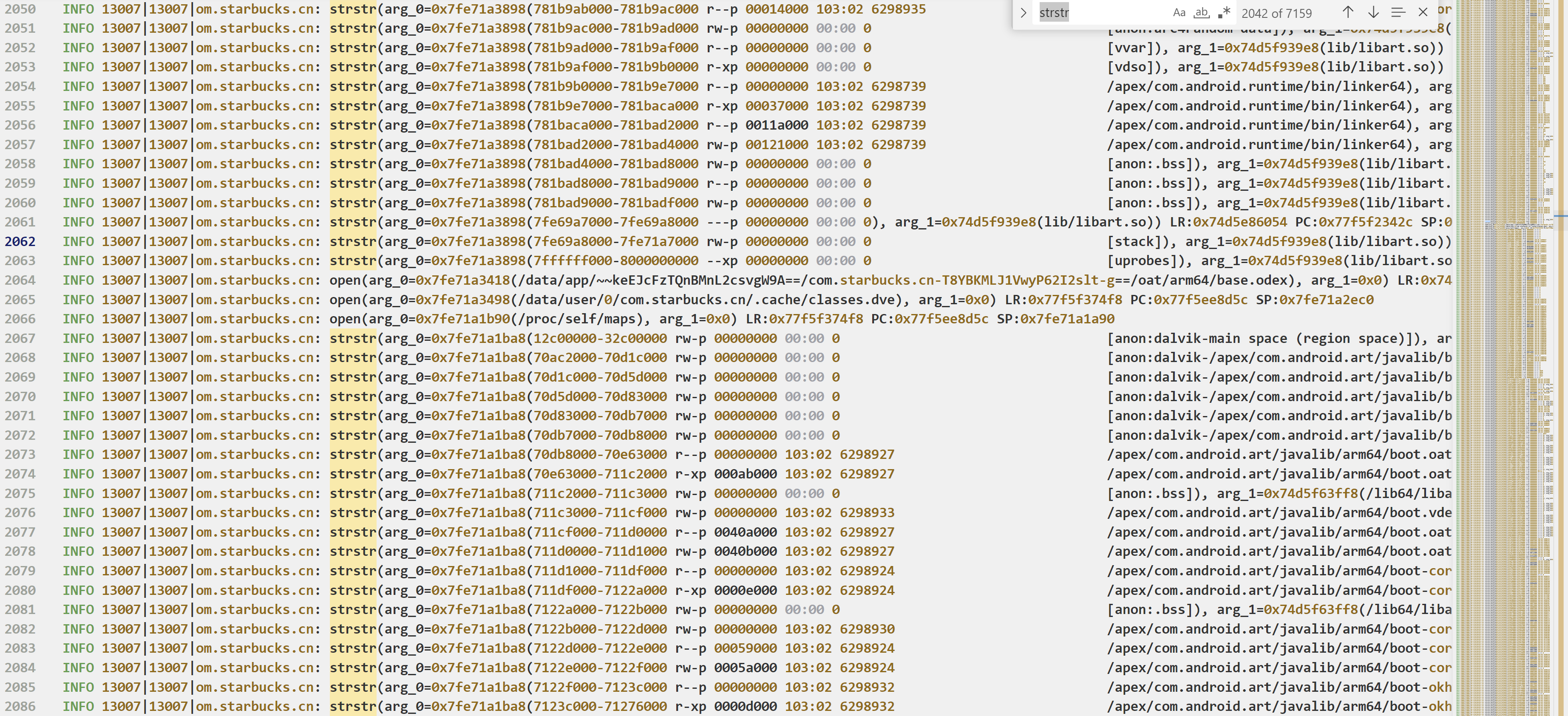 ./stackplz -n com.starbucks.cn -s openat:f0.f1.f2 -f w:/system -f w:/dev -f b:/system/lib64 -o tmp.logLR比较,需要提前计算用于比较的值: