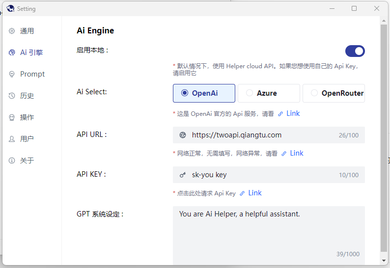 目前的开发目标为套壳AI应用提供合规支持,为您和您的企业提供合规的AI接入能力。
