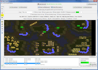 You can also run a check on any of your saved replays or on entire folders of replays (no BWChart required). It logs the results and if it finds a hacker in your last replay, it can bring its window to front or play an alert sound. It has many other useful features such as replay autosave, charts visualizer like APM/EAPM, build orders, hotkeys, strategy, overall APM/EAPM, player matcher (AKA finder), PCX screenshot auto-converter, game chat extractor, server monitor. You can list, search, filter players' actions.