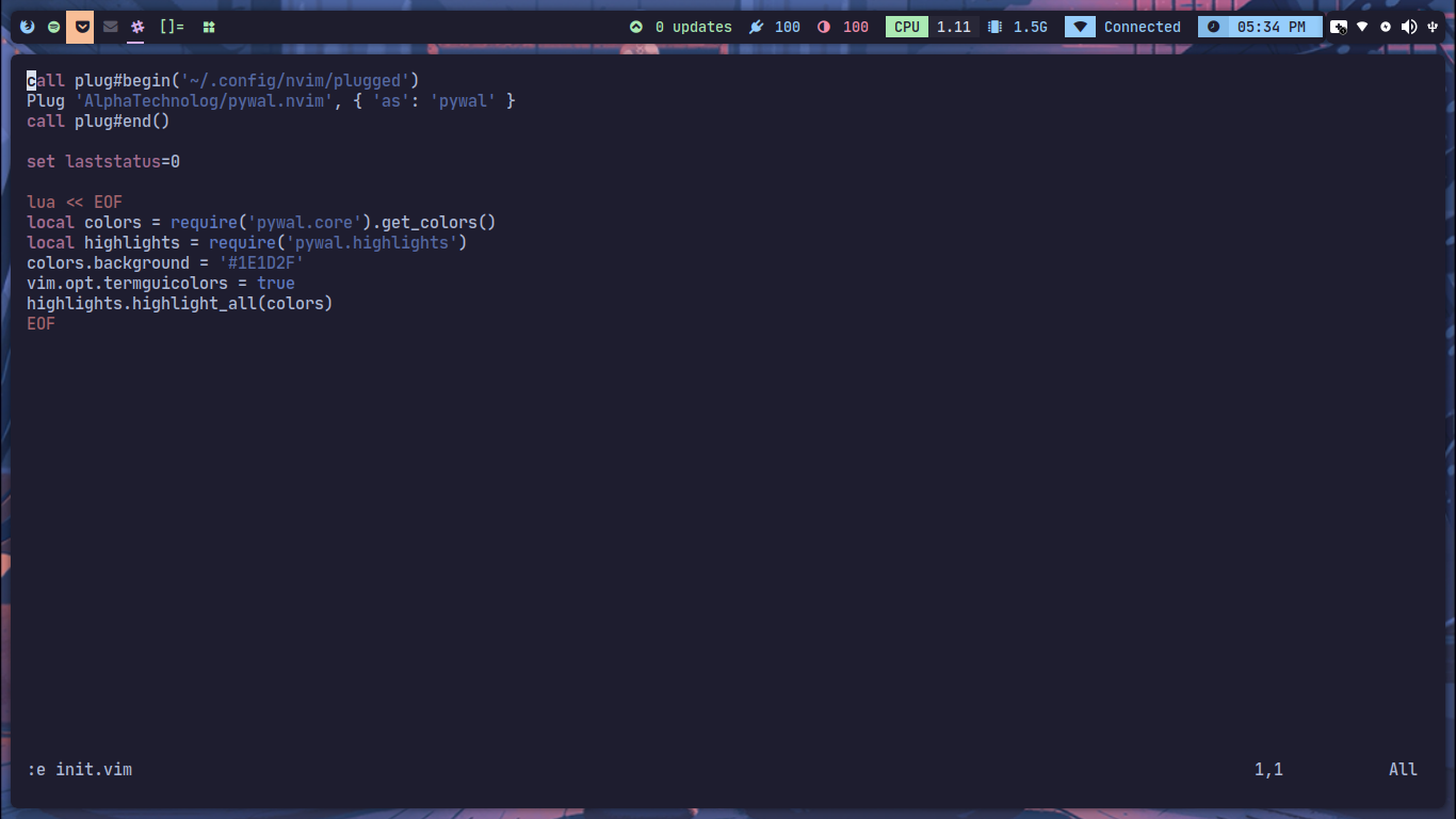 Plug 'AlphaTechnolog/pywal.nvim', as = 'pywal'AlphaTechnolog commented