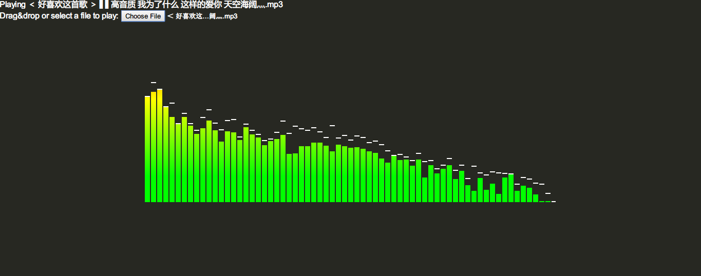 HTML5 Audio Visualizer An audio spectrum visualizer built with HTML5 Audio API Demo See it in action. Screen Capture