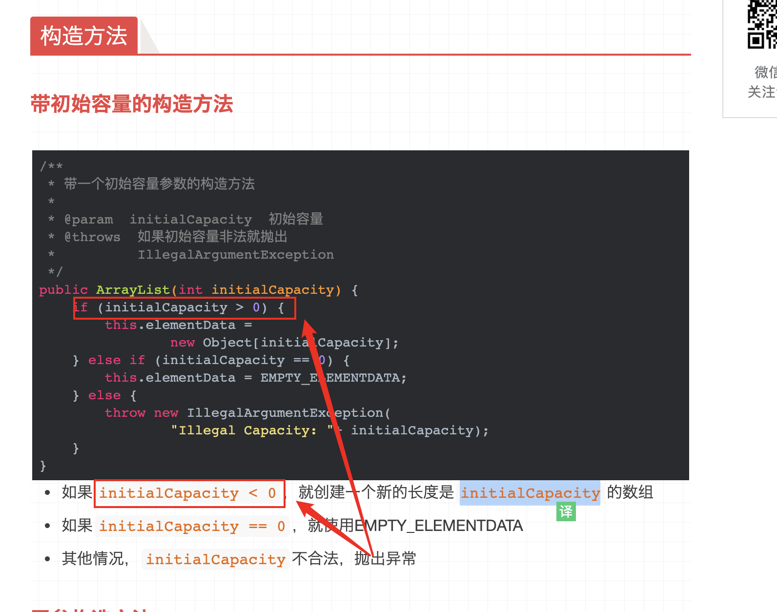 该文章应该:如果initialCapacity > 0,就创建一个新的长度是initialCapacity的数组