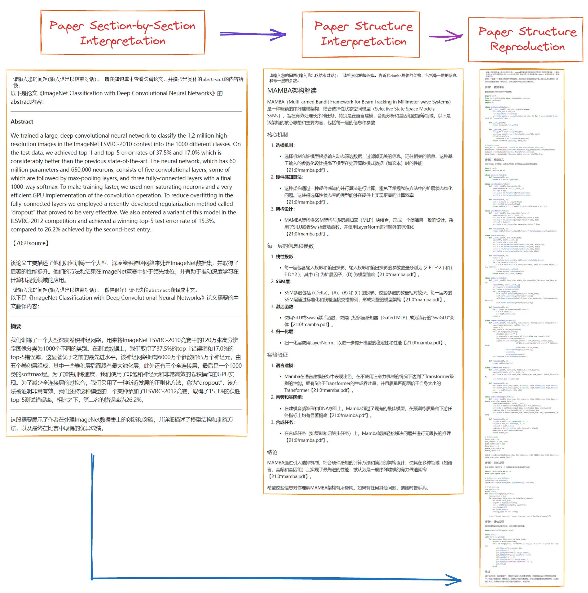 Leveraging its powerful RAG system and Multi-Function capabilities, MateGen can conduct in-depth paper tutoring. It can assist users in translating and interpreting papers section by section, summarizing core knowledge points, writing hundreds of lines of code to reproduce paper architectures with one click, and directly running and verifying them in the local code environment!