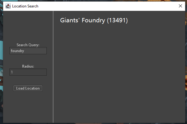 The location for the Giants' Foundry minigame is missing from the location search. The region ID for the Giants' Foundry is 13491
