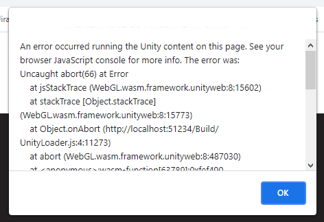 The issue may appear when logging in WebGL build. The following error message is displayed: