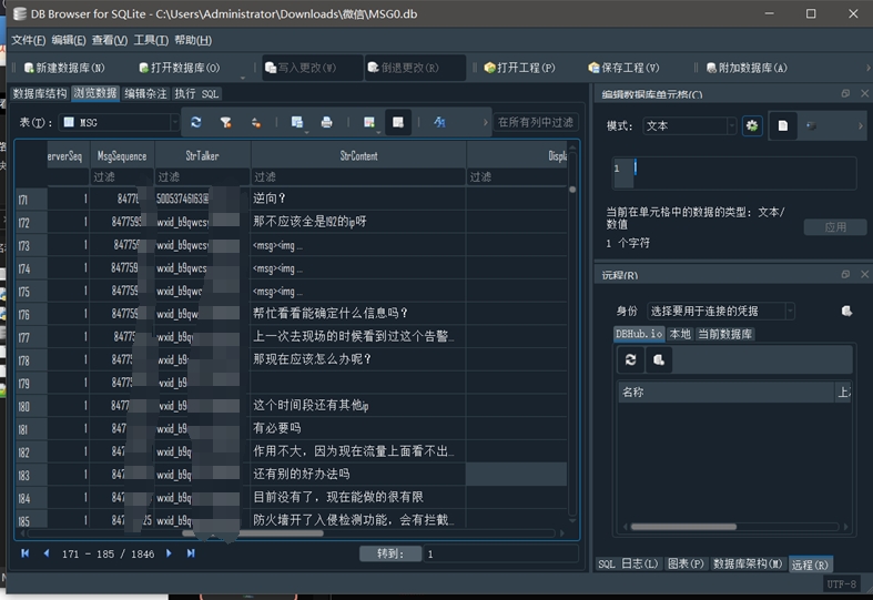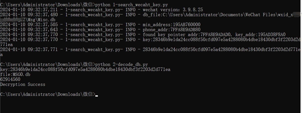 wechat-dump-rs.exe复制MSG0.db到当前目录,通过key解密