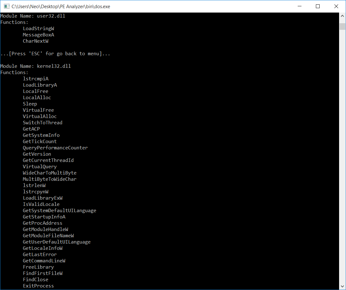 Si tratta di un semplice PE analyzer, al momento fornisce le seguenti operazioni: