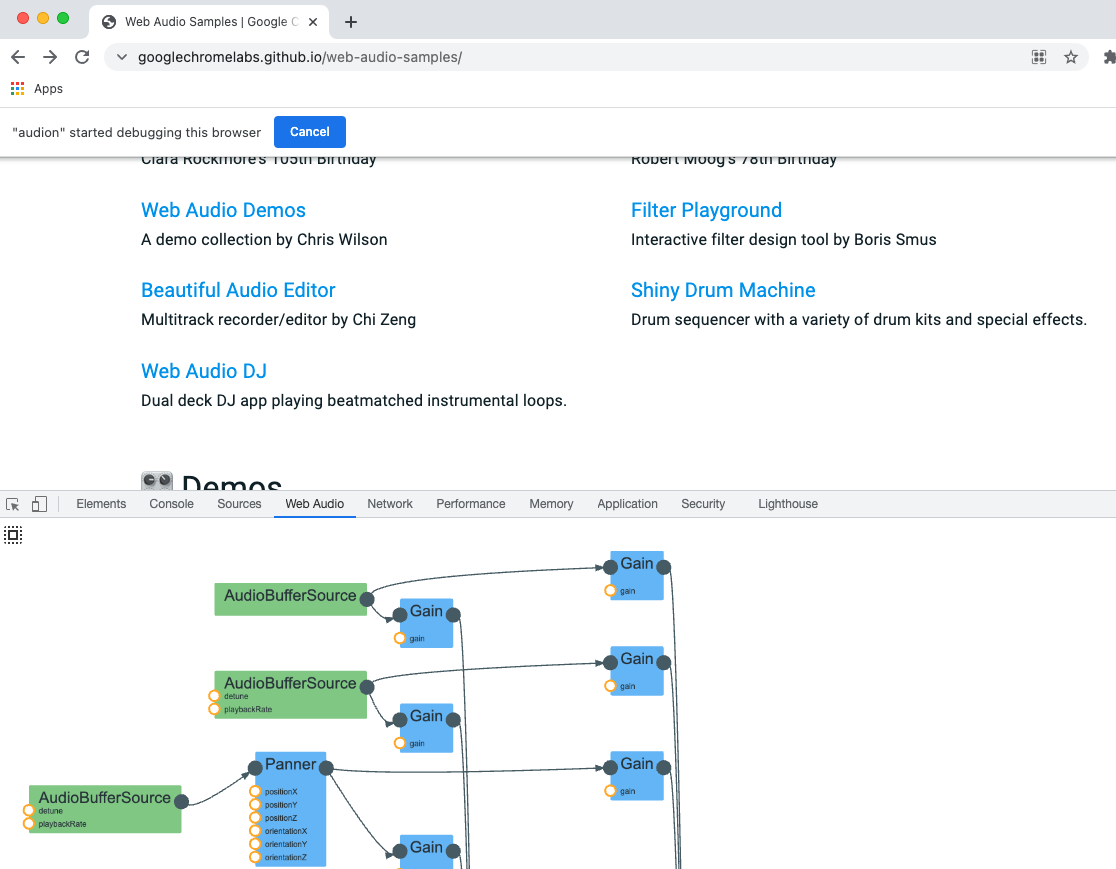 - Go to https://googlechromelabs.github.io/web-audio-samples/.