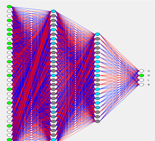 The output layer is simple it contains 4 neurons that for each direction Up,Down, Left,Right