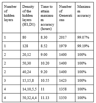There are two types of the result, one in which we make changes in the neural network and do not change the properties of the genetic algorithm. These parameters or the properties are used in the algorithm in which we find the most optimized result.