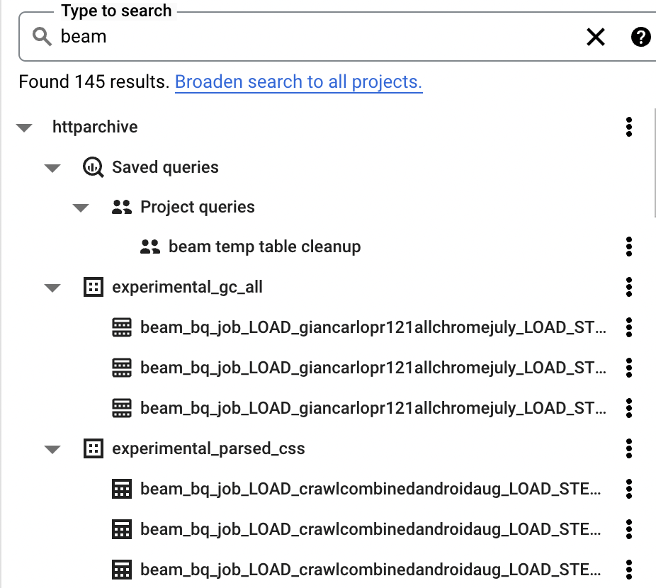 I've updated the queries to ignore the beam tables in future and rerun all the data.