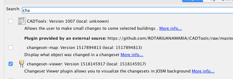 Plugin couldn't be loaded due to missed class org.openstreetmap.josm.plugins.changeset.ChangesetViewerPlugin