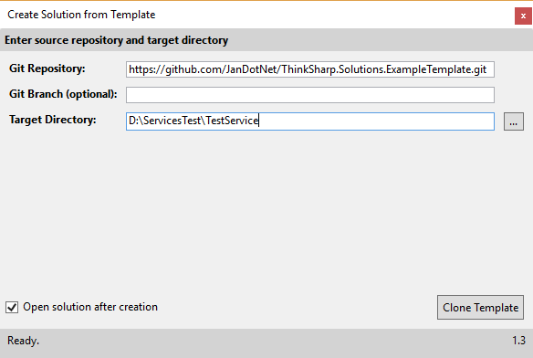 There is also a working sample available: https://github.com/JanDotNet/ThinkSharp.Solutions.ExampleTemplate