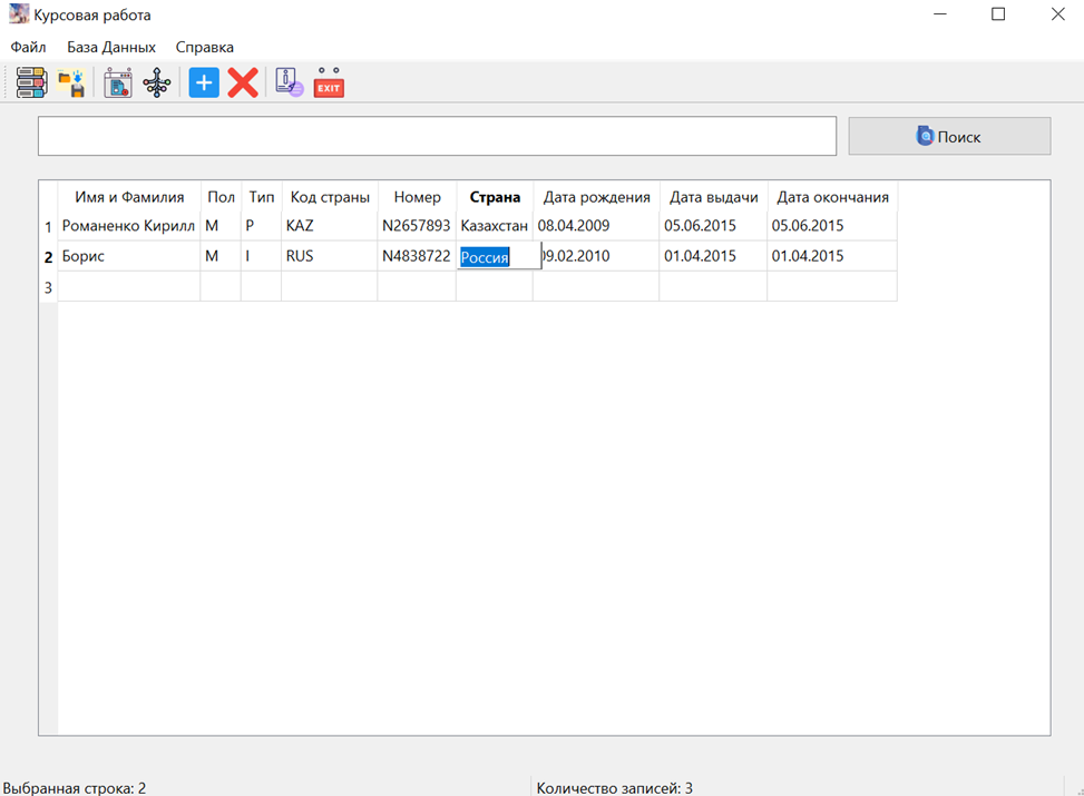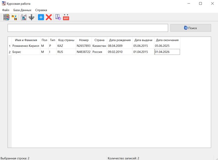 База данных создана с использованием C++ и библиотеки Qt5. Среда программировании Qt Creator.