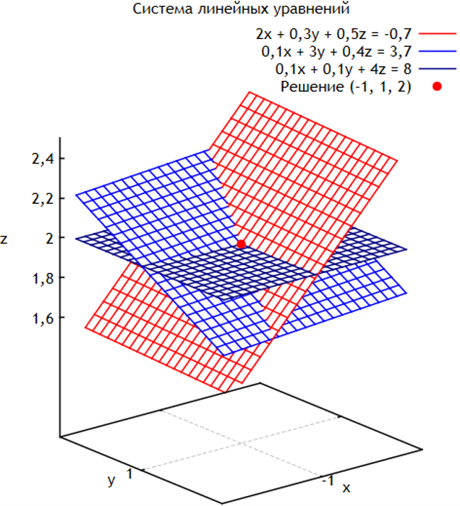 plt.plot_dot({ -1, 1, 2 }, "Решение (-1, 1, 2)");