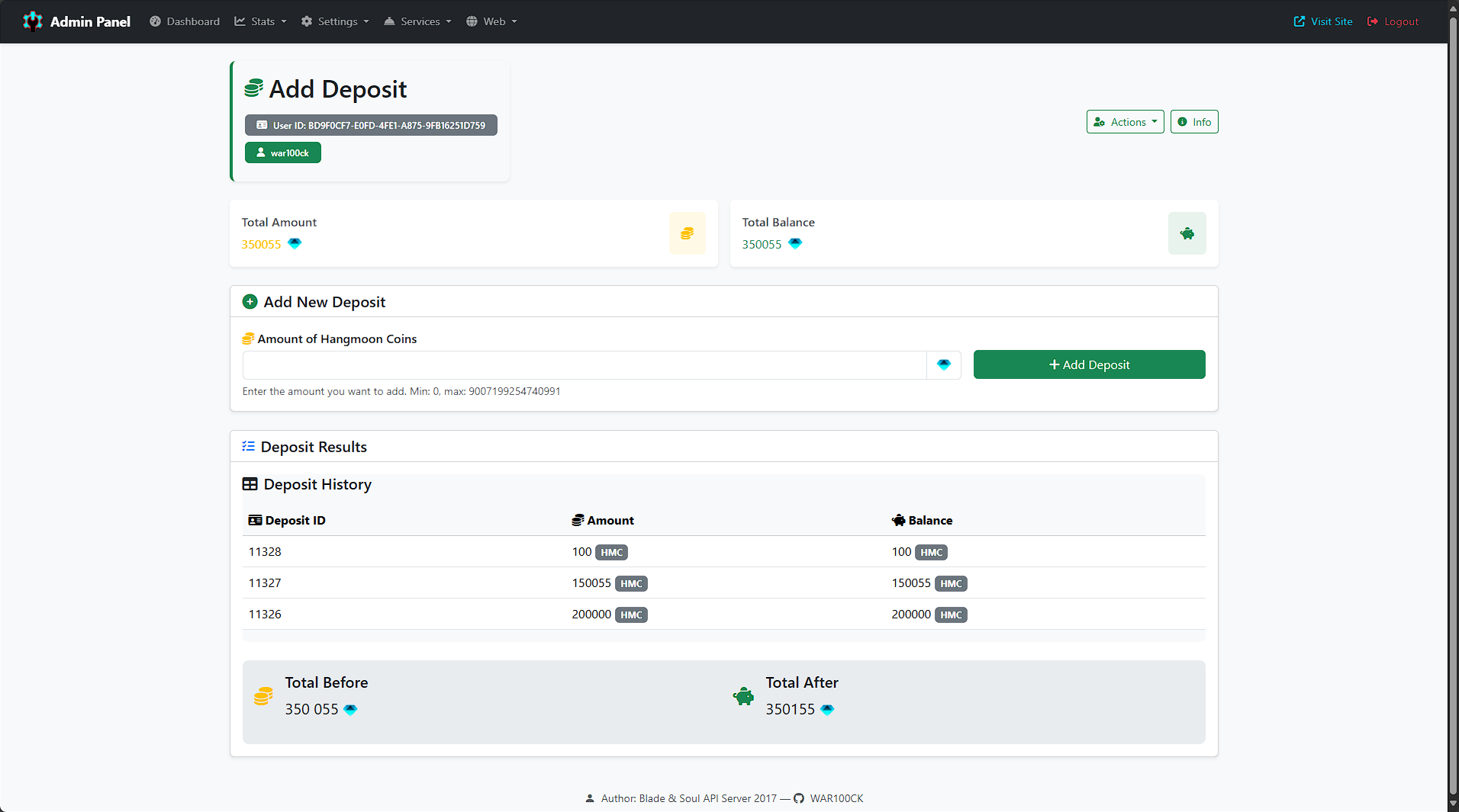 - POST /add-deposit: Adds virtual currency to a user's account.