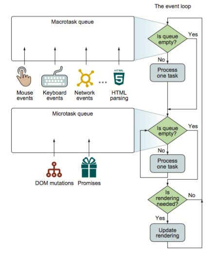 - UIRendering 排在一轮 eventloop 的尾部,在本轮 eventloop 所有 task 和 microntask 执行后再执行