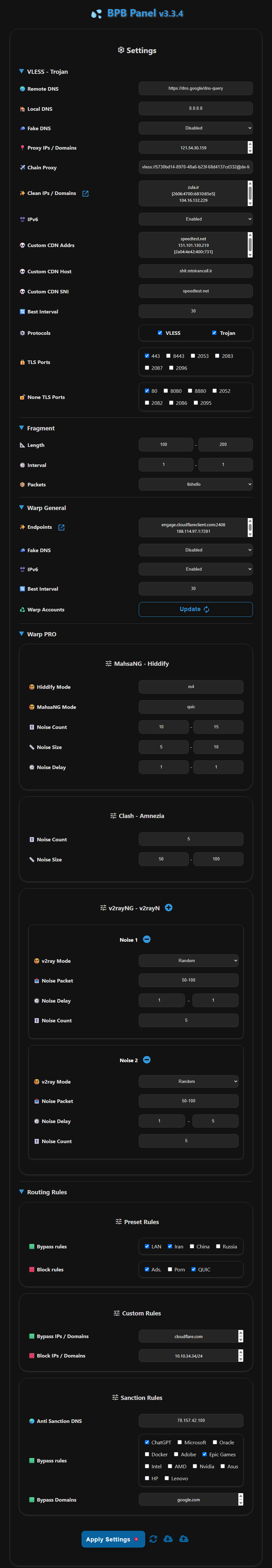- Comprehensive Routing Rules: Bypassing Iran/China/Russia and LAN, Blocking QUIC, Porn, Ads, Malwares, Phishing and also bypassing sanctions.