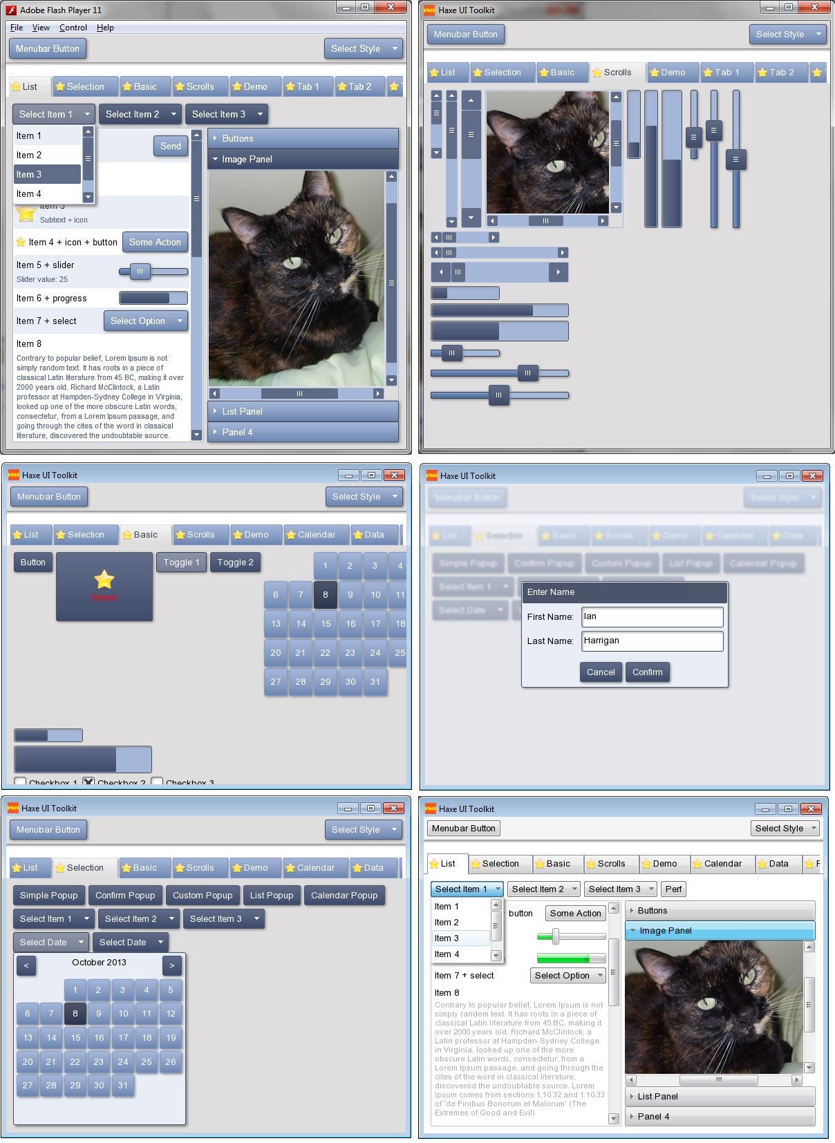 Cross platform Haxe/OpenFL set of styleable application centric rich UI components to be used "out the box". Supports css type styling/skinning.