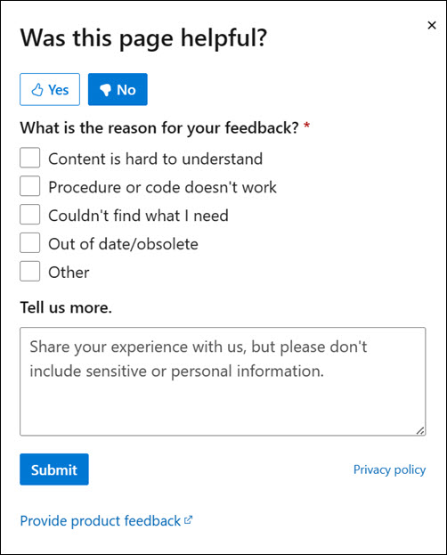 To make it easier for you to submit feedback on articles on learn.microsoft.com, we're transitioning our feedback system from GitHub Issues to a new experience.