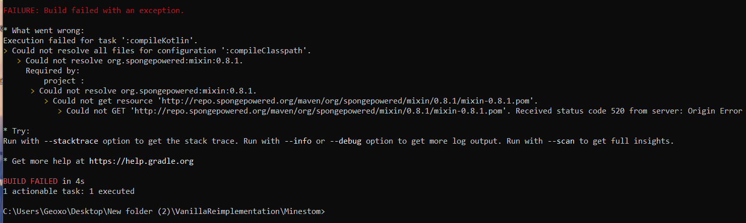 i tried compiling minestom but it seems that gradle cant fetch the mixin from spongepowered, i dont know enough about how gradle works so i thought i'd share it instead