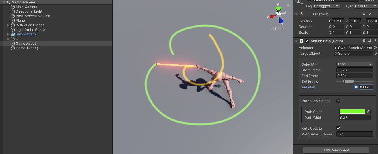 검기 이펙트를 만들 때 특정 모션의 괘적을 표시 해주는 툴입니다.