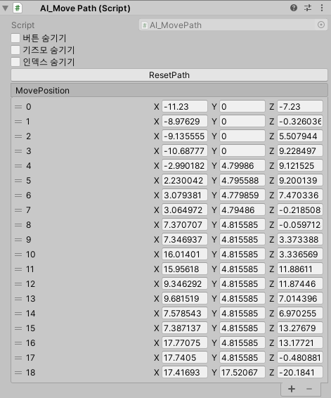 간단한 포지션값 생성 툴입니다. 벡터3 리스트로 구성되어 있습니다.