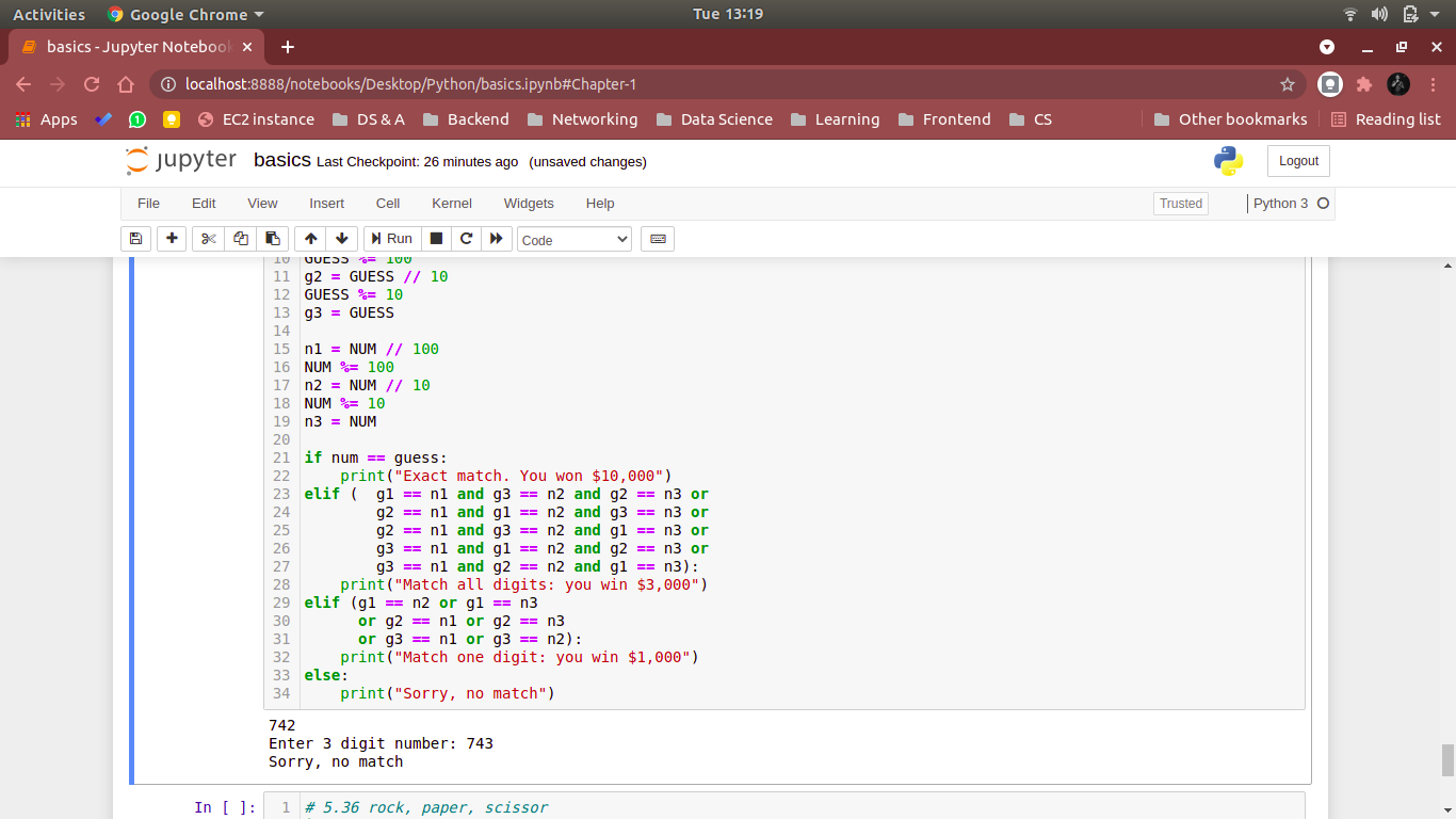 suppose the random number is 169 and you enter 999 it says matches all digits but that's wrong. becuase n1, n2, n3 matches g3 Your conditions are only checking if the numbers are matched with every other number. they are not restricting that one number has been checked and need not to be checked again. like if n1 matches g3; these numbers are locked and g3 must not be checked against n2 or n3