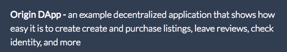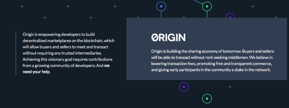"Origin is empowering developers to build decentralized marketplaces on the blockchain, which will allow buyers and sellers to meet and transact without requiring any middlemen. Achieving this ambitious goal requires contributions from a growing community of developers. We would love for you to join us in this mission."