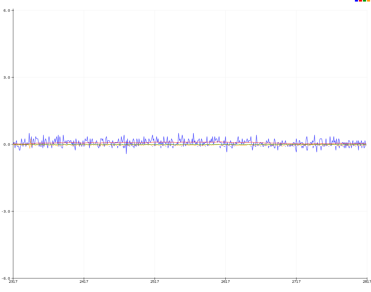 - Red: Two step Kalman/Complementary filter estimated altitude (m).
