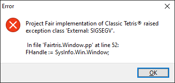 A moment ago I noticed that the last pull request was accepted, so I downloaded fresh source, recompiled the project and... I get a SIGSEGV exception right after starting the program. The problem now is reading the window handle — an exception is thrown when executing the following statement: