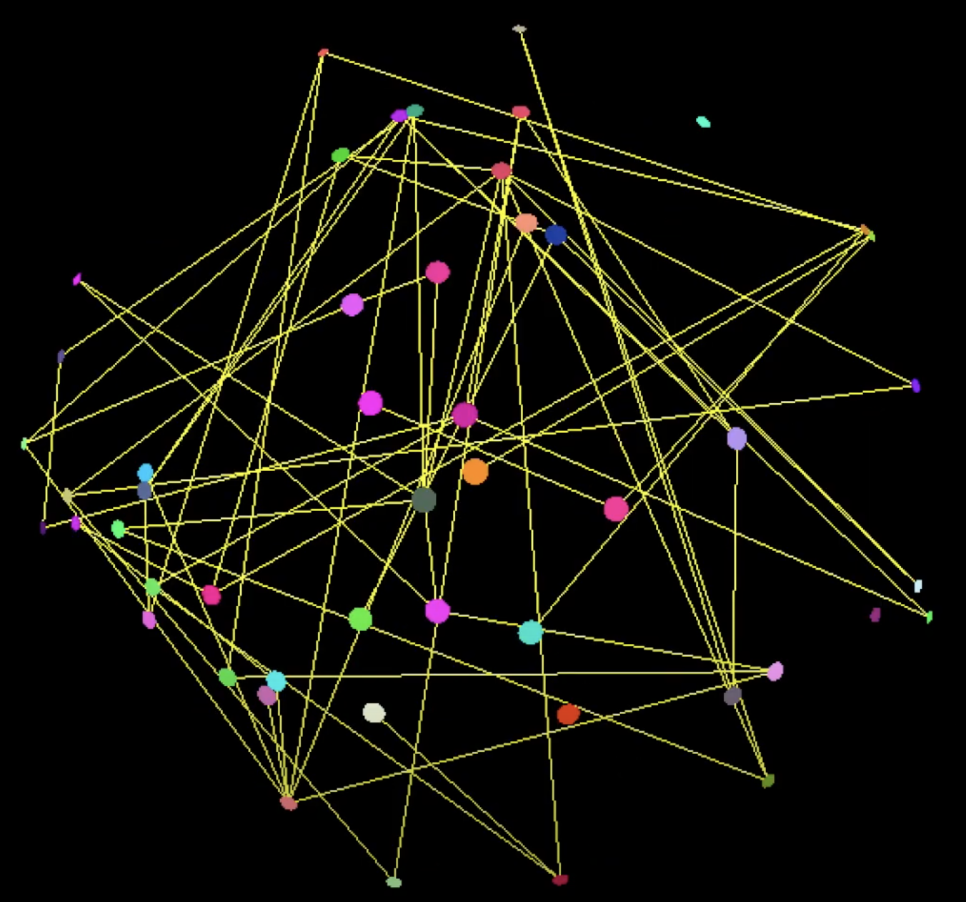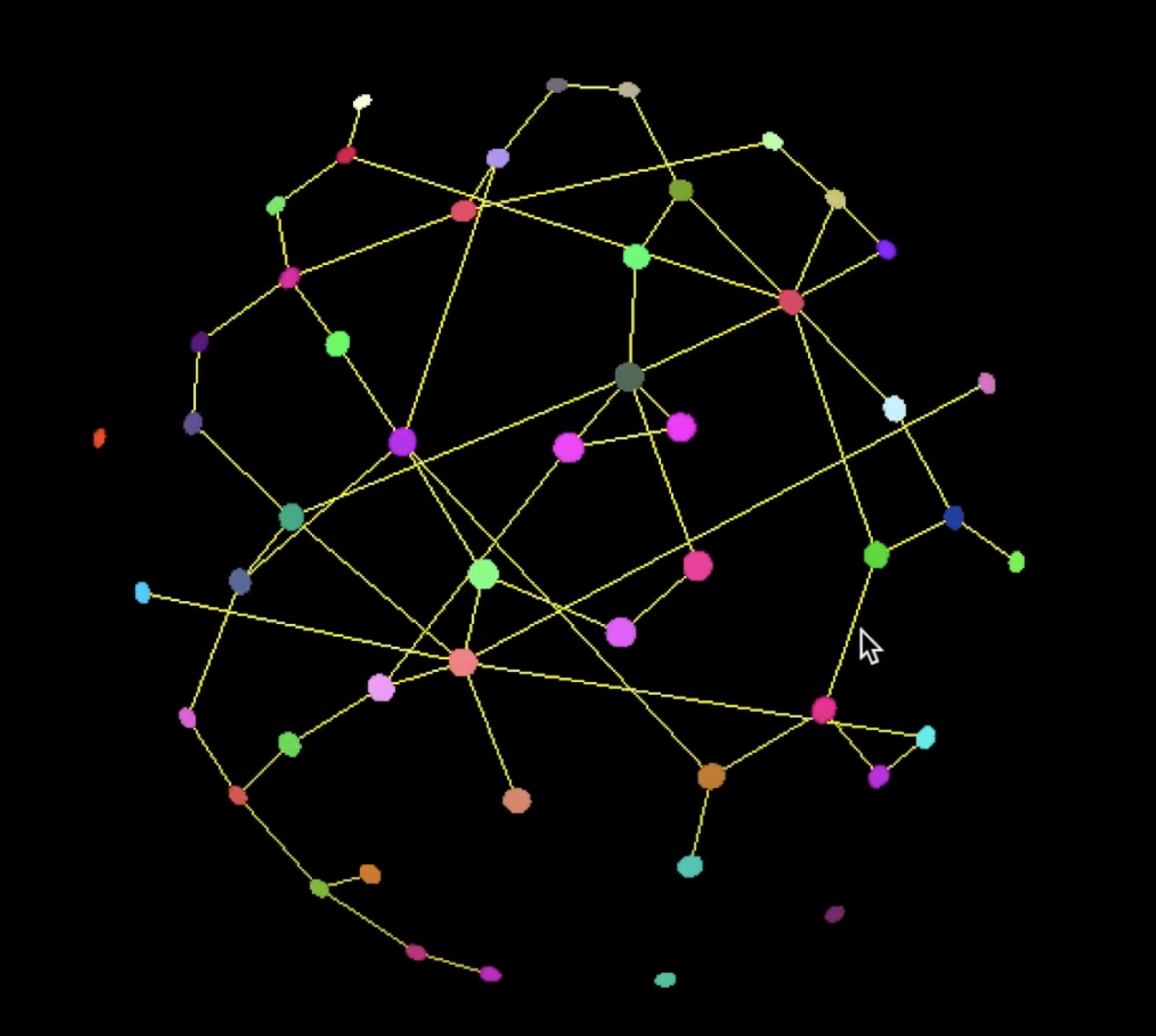 Each node is a circle in the hyperbolic plane that has a texture that identifies the node.