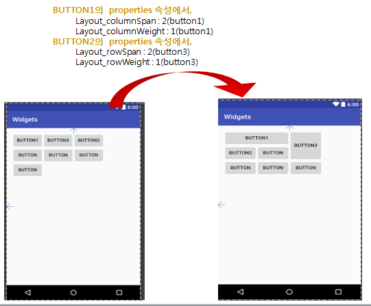 - 구성요소(텍스트, 버튼 등)들을 2차원 배열의 테이블 형식으로 나타낼 때 사용한다.
