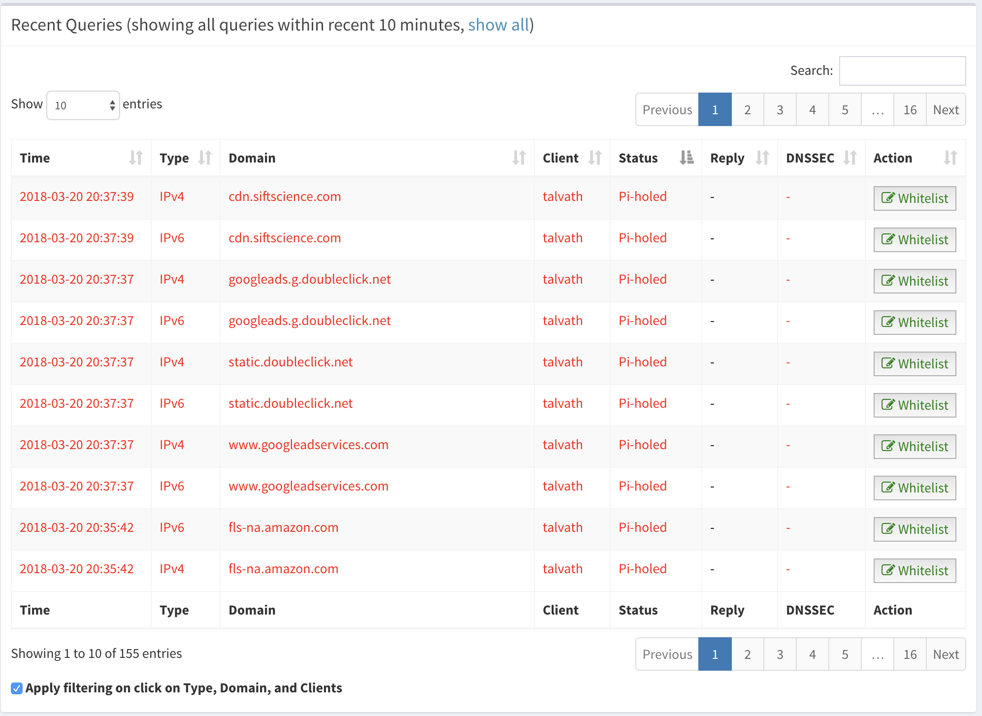 type & versionsummaryRawsummaryoverTimeData10minstopItemsgetQuerySourcesgetForwardDestinationsgetQueryTypesgetAllQueriesenabledisablerecentBlocked
