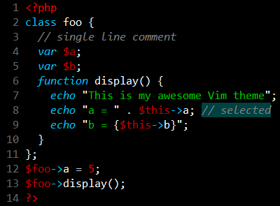 The dark theme from Zend Studio 5.5 as seen in Vim.