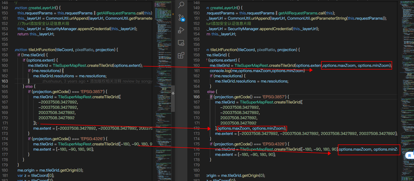 嗯,源码里src/openlayers/mapping/TileSuperMapRest.js的tileUrlFunction没传入 minzoom,maxzoom,链接