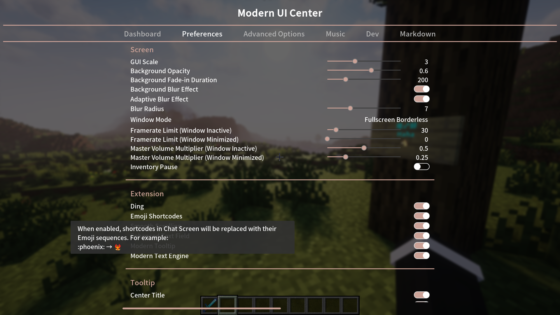 Modern UI for Minecraft, is a Minecraft Mod that is based on Modern UI Core Framework and Modern UI Core Extensions. It provides Modern UI bootstrap program in Minecraft environment and Modding API based on Forge/Fabric, to make powerful Graphical User Interface in Minecraft.