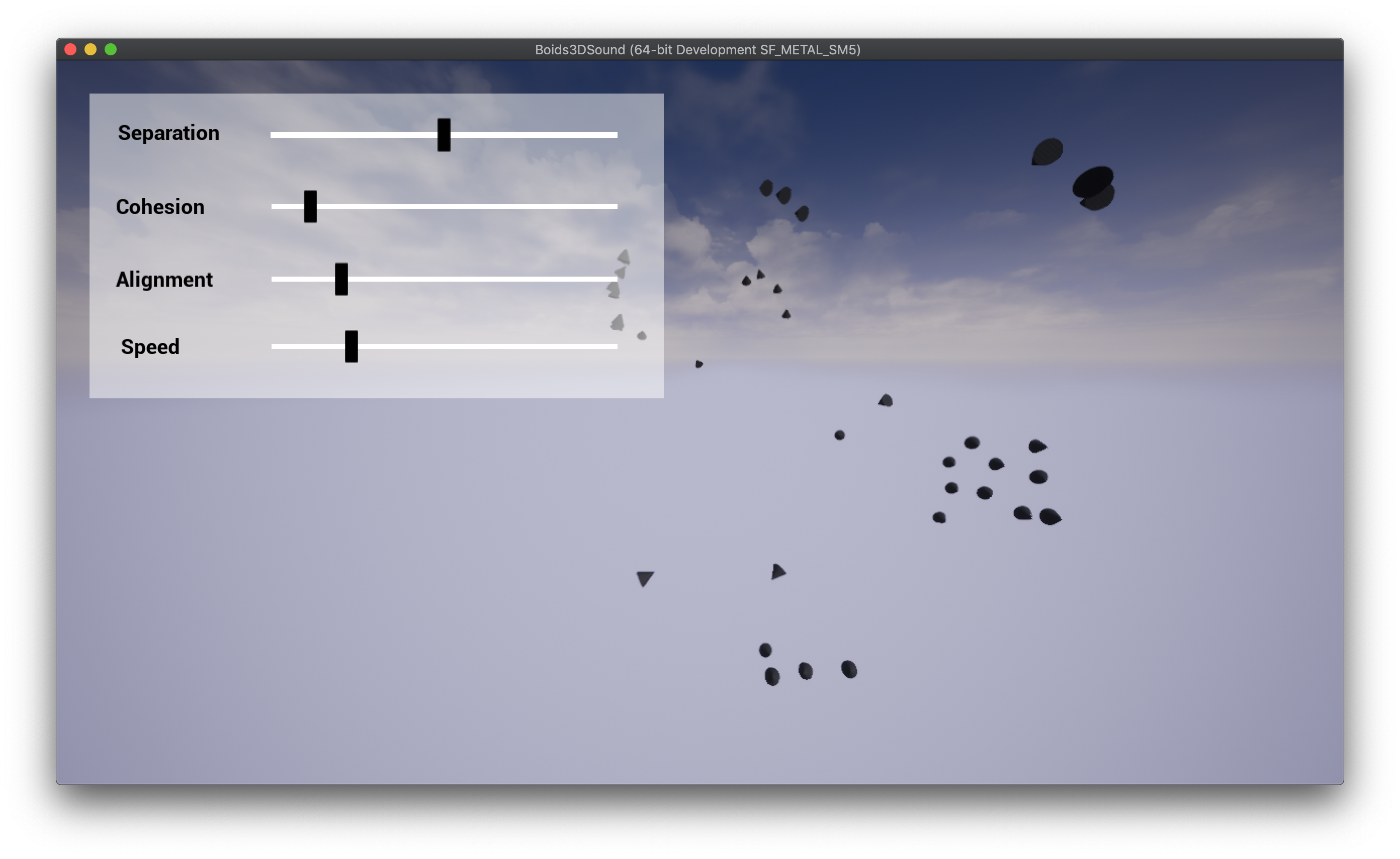 To get started, try the example project which uses the Boids flocking algorithm to spatialize sounds around the listener.