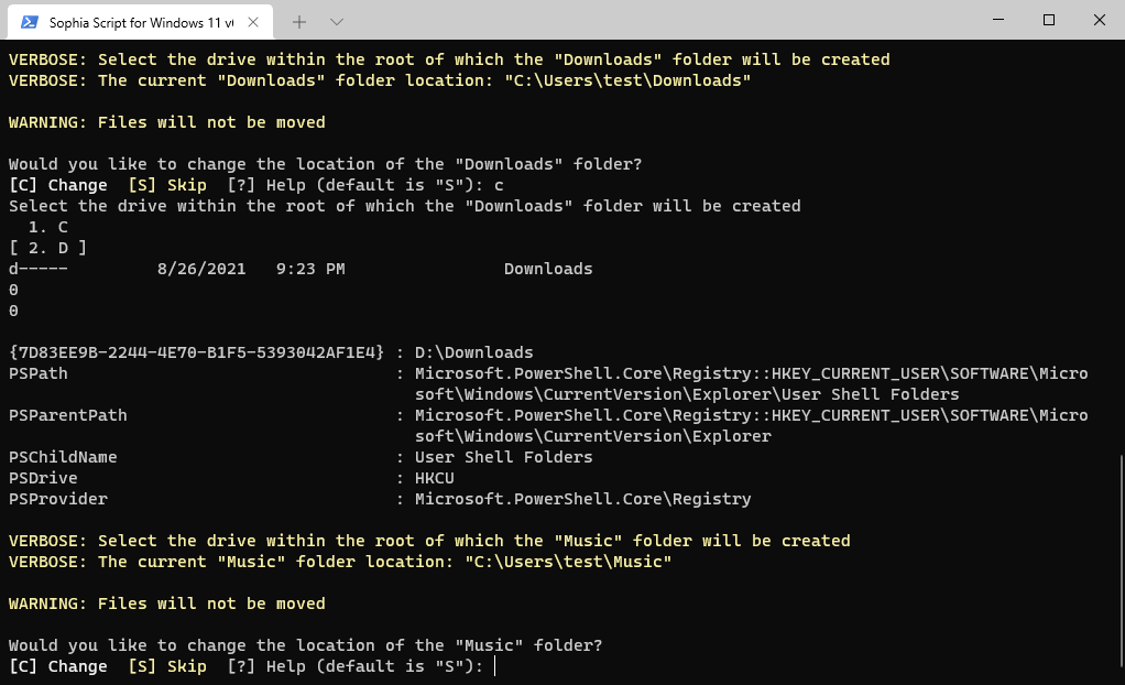 - Change location of the user folders programmatically (without moving user files) within interactive menu using arrows to select a drive