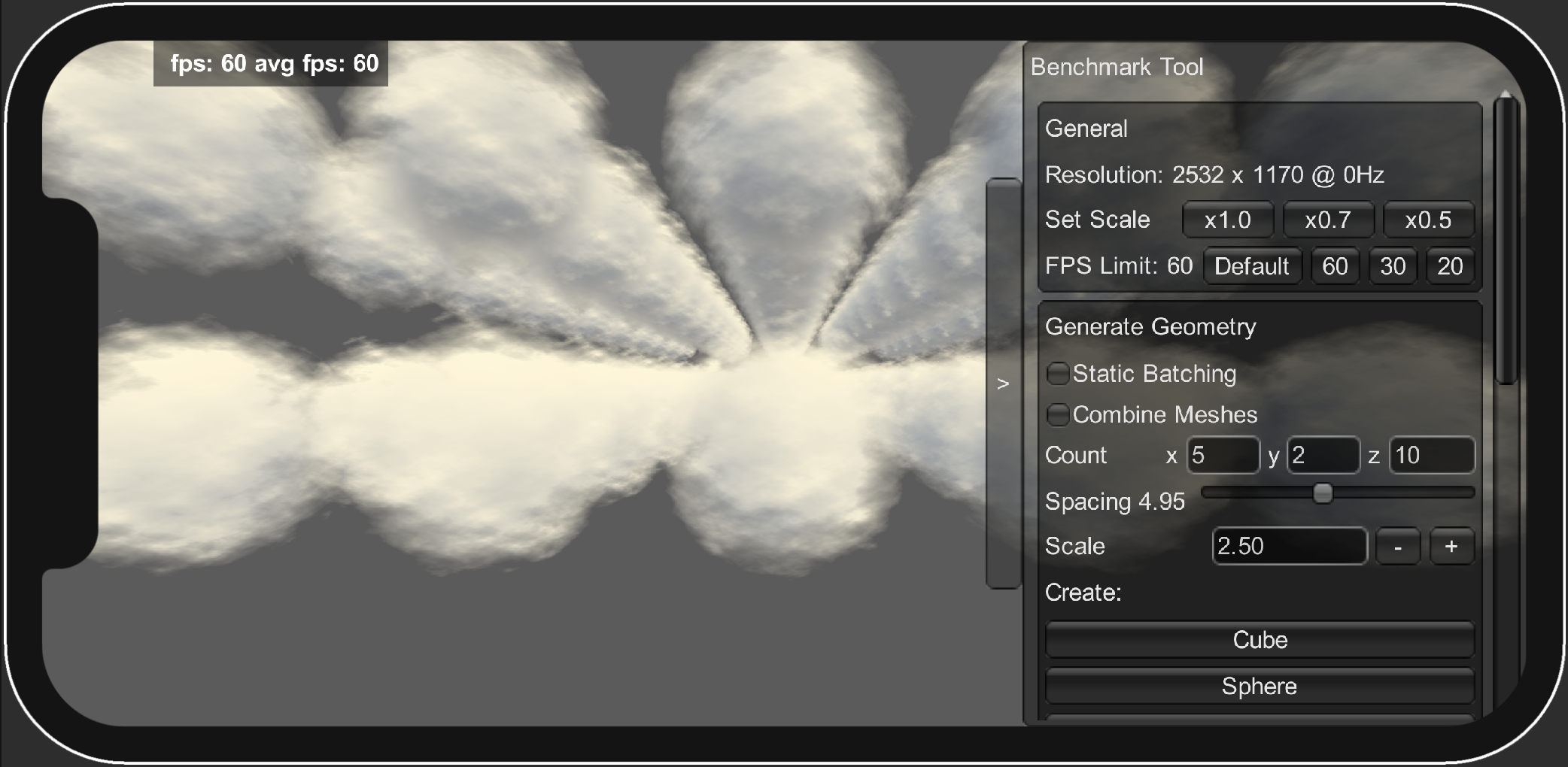 - Generate any geometry using the tool, and test your shaders rendering performance