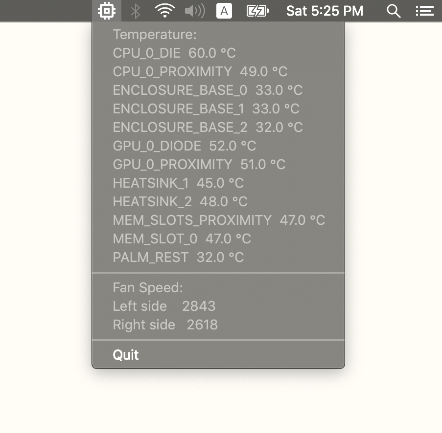 Minimal application which shows macOS's chip tempratures and fan speeds on menu bar.