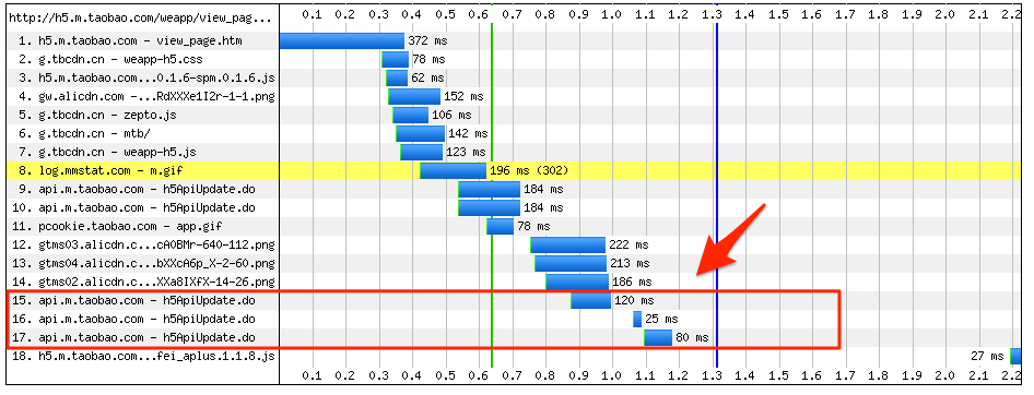 就会容易出现下图的情况,整个页面显示完成时间被拉长。消耗的时间也不稳定(dns解析,tcp建链,服务器响应等),而这部分由服务端完成的话会非常高效和稳定(有线高速网络,高性能服务器)。我们的经验来看,服务端能在200ms内完成,有些甚至几十ms。