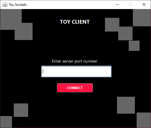 On server start-up, the server socket is bound to a random port which is displayed on the top right corner. Take note of this as it will be needed for connection on the client side.