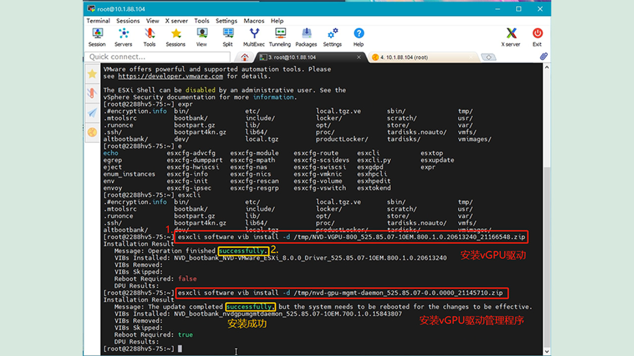 完成上面的步骤后,在ESXI上安装vGPU就完成了。