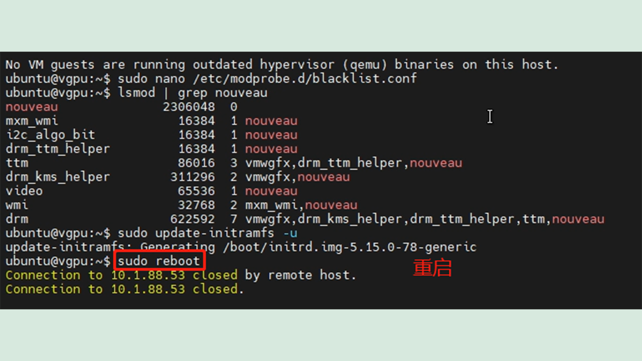 # 重启完电脑后用命令检查显卡驱动有没有在运行