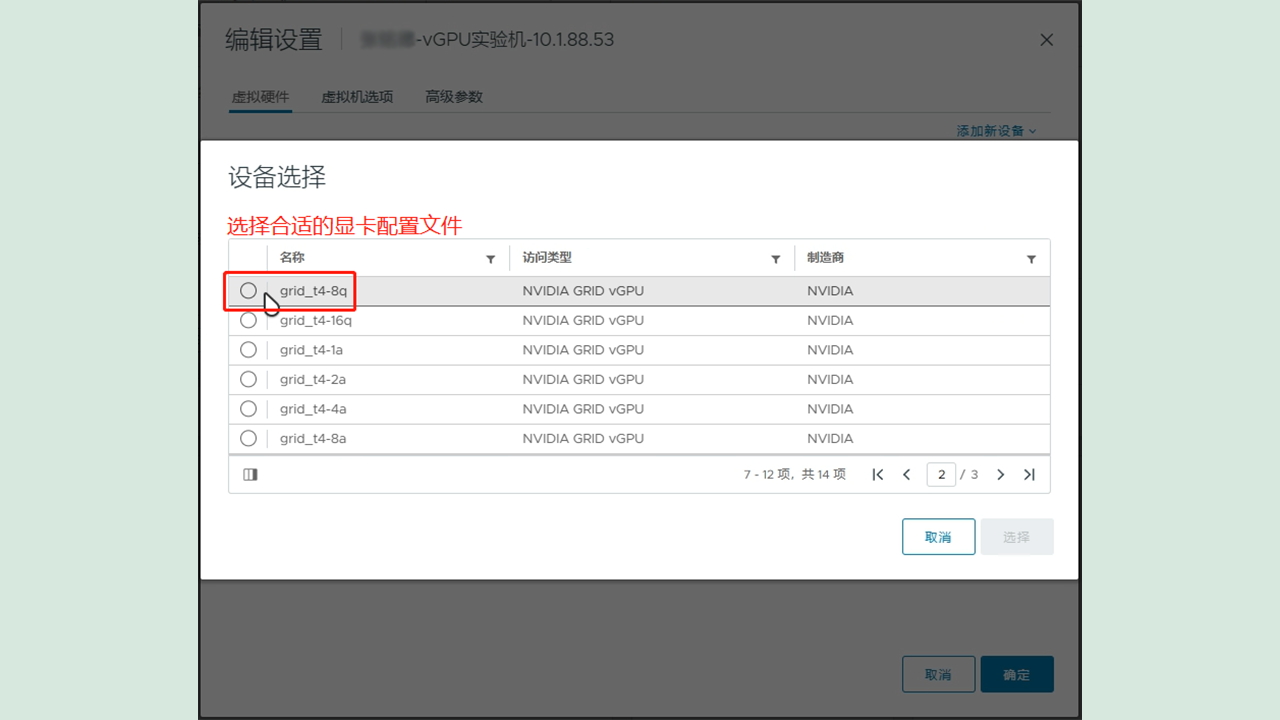 为了展示调整显存的功能,我选择grid_t4-8q,8GB的vDWS。