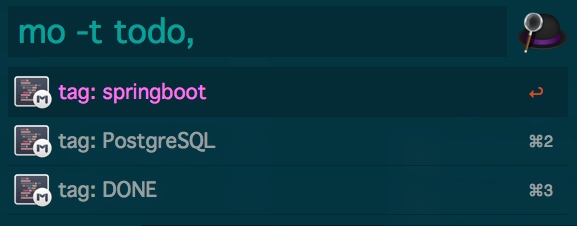 mo [-t tag1,tag2...] [-h keyword1,keyword2,...] [keyword1] [keyword2]...