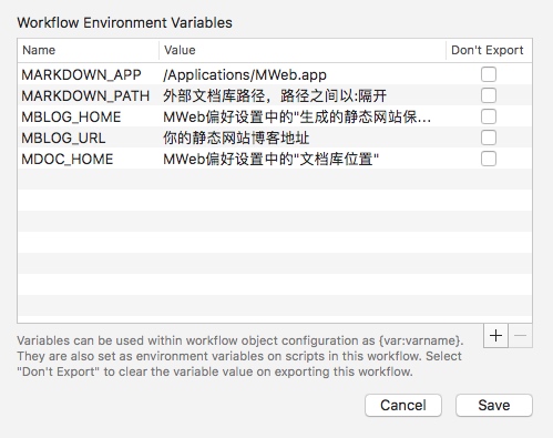 :隔开,例如:${HOME}/working:${HOME}/blog:${HOME}/fun - MARKDOWN_APP 变量,打开外部文档的App,默认是